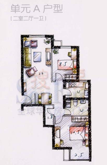2室 2厅 1卫 1厨 83平方米二期E单元A户型